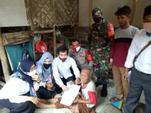 H.Suhada Kades Mekar Baru di dampingi Binamas dan Babinsa saat menyalurkan BLT-DD secara dor to dor.