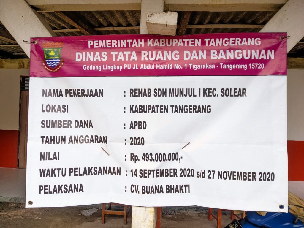 Padahal, rehab SDN Munjul 1 itu menyedot anggaran sebesar Rp.493 Juta yang bersumber dari APBD Kabuoaten Tangerang tahun 2020.