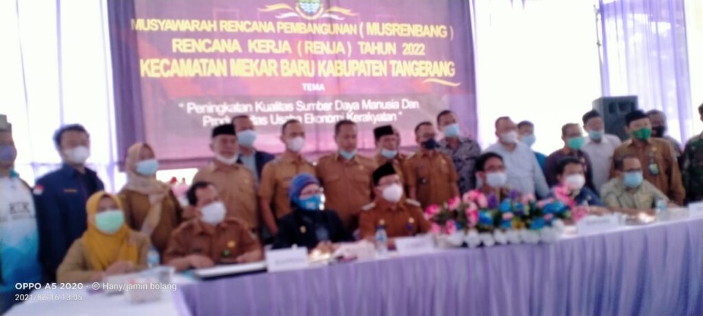 Pemerintah Kecamatan Mekar Baru, Kabupaten Tangerang, pada Selasa (16/2), menggelar kegiatan Musyawarah Perencanaan Pembangunan (Musrenbang) yang dihadiri unsur Muspika Mekar Baru dan eleman masyarakat. Hadir pula Bappeda dan tujuh anggota legislatif dari Kabupaten Tangerang.