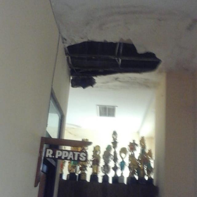 Kondisi atap bangunan Kantor Kecamatan Kasemen, Kota Serang, itu tampak sangat mengkhawatirkan. Apalagi saat ini tengah musim hujan. Sehingga lantai ruangan pun tampak menjadi becek tergenang air hujan. Tak ayal lagi, sehingga hal itu dapat mengganggu pelayanan terhadap masyarakat.