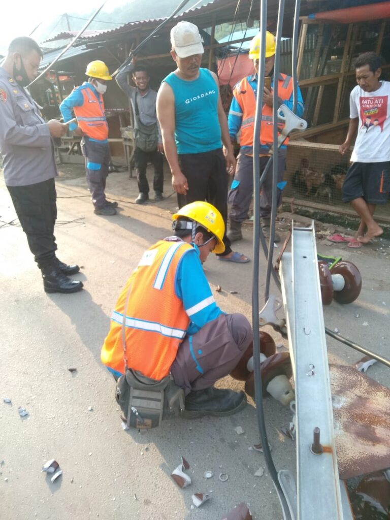Kejadian tiang listrik ambruk langsung ditangani oleh pihak cabang PLN Pulomerak dan dibantu petugas pengamanan anggota Polsek Pulomerak.