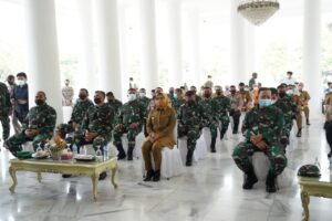 Danrem 064/MY Banten, Brigjen TNI Gumuruh Winardjatmiko, SE, MBA, yang diwakili Pgs. Kasrem 064/MY, Kolonel Inf Arief Sjaerozi, menghadiri pembukaan TMMD ke-111 TA 2021 yang dilaksanakan oleh Bupati Serang, Hj. Ratu Tatu Chasanah, SE, M.Ak, di Gedung Pendopo Kabupaten Serang. Senin (15/6).