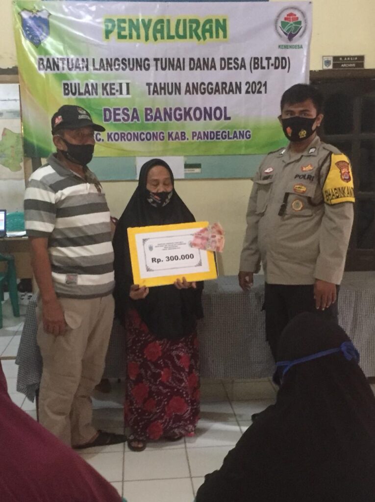 Penyaluran BLT DD tahun anggaran 2021 ini dipimpin langsung oleh Ade Sopandi selaku Kades Bangkonol dengan disaksikan aparat dari Babinsa Koramil, Babin Kamtibmas Polsek, Ketua serta Anggota BPD dan segenap Prades Bangkonol.