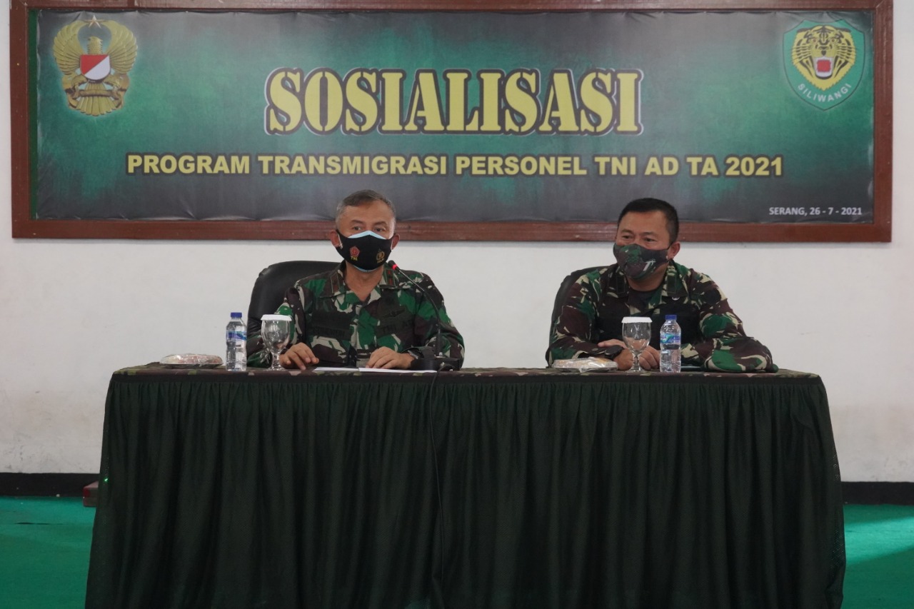 Perwakilan anggota TNI dan PNS Jajaran Korem 064/MY Banten,  menerima sosialisasi Program transmigrasi personel TNI AD TA. 2021. Kegiatan itu bertempat di Aula Makorem 064/MY Jln Maulana Yusuf No 9 Kota Serang, pada Senin (26/7).