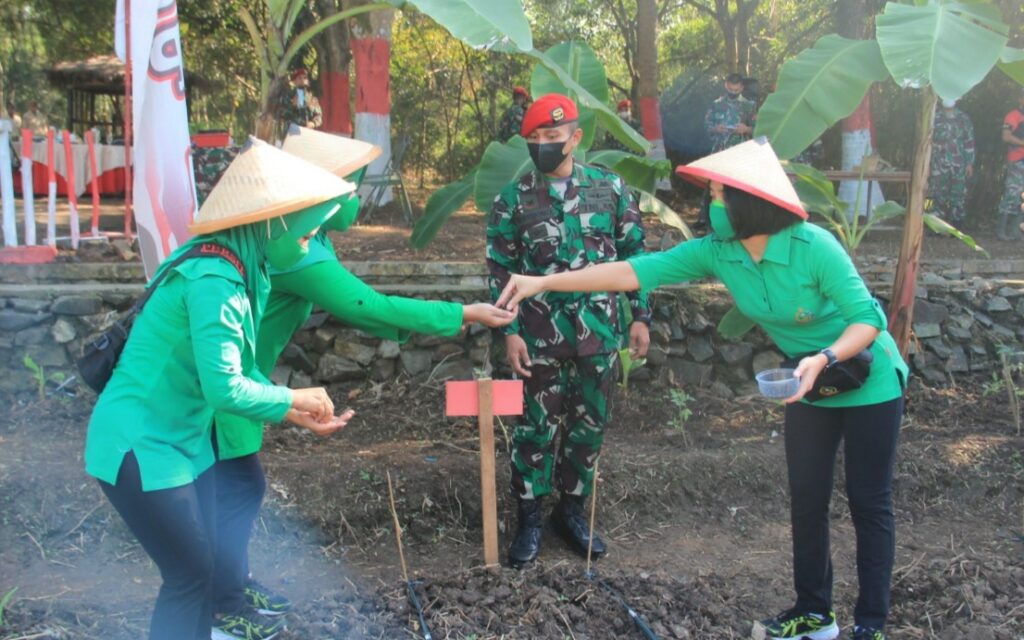 Grup 1 Kopassus dan Persit KCK Cabang II Grup 1 PCBS Kopassus berinovasi menyiapkan lahan ketahanan pangan dengan thema “Memperkuat Ketahanan Pangan di Grup 1 Kopassus” pada Kamis (12/8/2021).