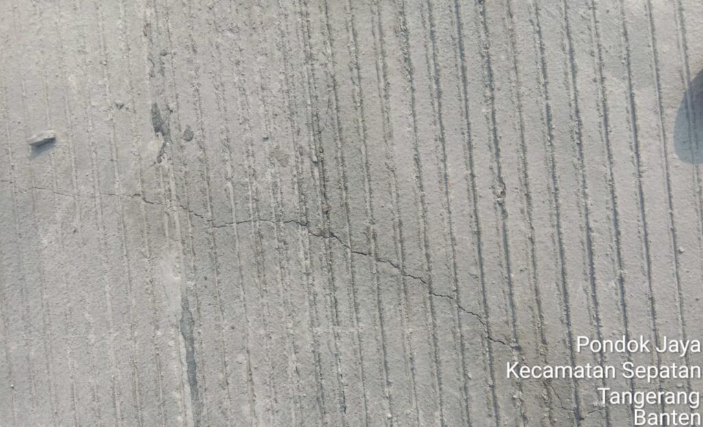 Tercatat baru sekitar satu minggu, namun pekerjaan betonisasi jalan di Perumahan Tangerang Resident sudah tampak retak-retak. Hal ini fakta kurangnya kualitas beton dan pekerjaan yang memang ceroboh.