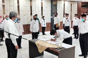 Bertempat di Aula Baduy Kantor Wilayah BPN Provinsi Banten, Selasa (31/8/2021) siang, Kepala Kantor Wilayah BPN Provinsi Banten, Rudi Rubijaya, melantik dan mengangkat sumpah jabatan 22 Surveyor Berlisensi wilayah kerja Provinsi Banten.
