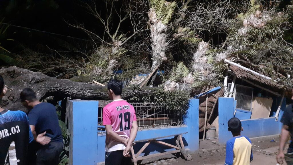 Sebuah pohon sawo di Kampung Siring, RT.05/RW.01 Desa Tanjung Manis, Kecamatan Anyar, Kabupaten Serang, Banten, secara tiba-tiba roboh dan menimpa warung Sembako dan teras rumah milik Oman Habudin, pada Senin (13/9/2021), sekitar pukul 21.30 WIB.