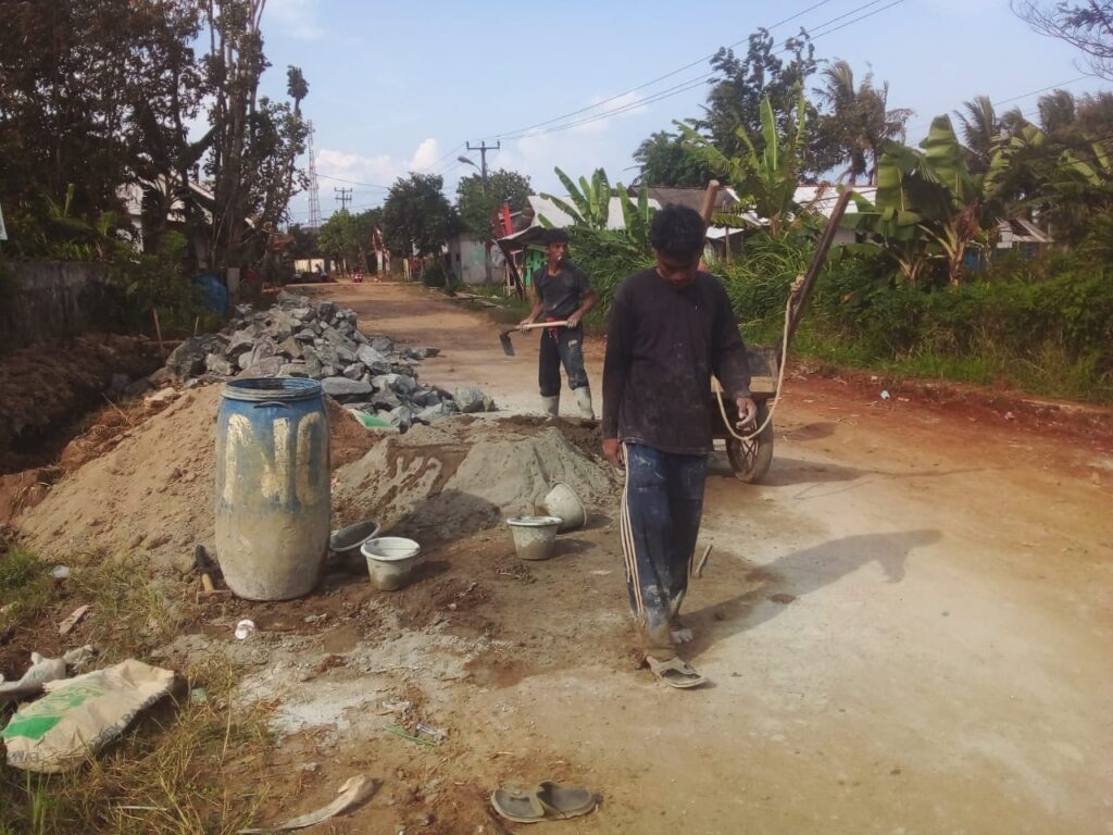 Celakanya, pelaksana proyek betonisasi jalan, CV. ZAHRA VISITAMA, di duga kuat dalam pelaksanaannya mengabaikan alat pelindung kesehatan dan keselamatan kerja bagi karyawanya. Hal itu sesuai yang tertera di papan informasi seperti, helm, sepatu boot, sarung tangan dan masker.