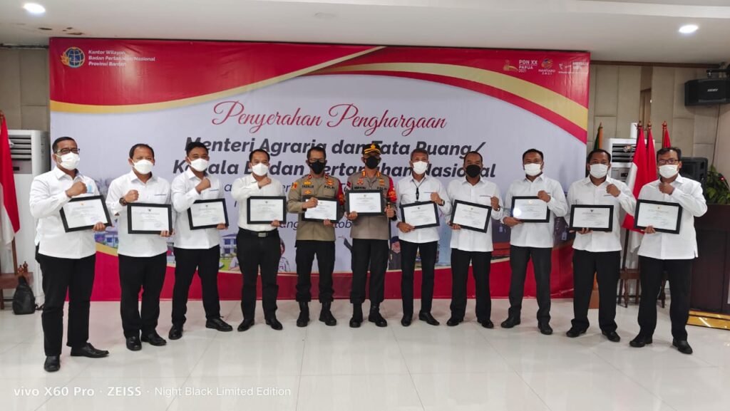 Selain itu juga Kepolisian Metro Jaya, Kepolisian Resor Metro Tangerang Kota dan Kejaksaan Tinggi Banten atas Keberhasilan Target Operasi Mafia Tanah di Provinsi Banten pada Rabu (13/10/2021). Kegitaan itu bertempat di Aula Baduy Kantor Wilayah BPN Provinsi Banten.