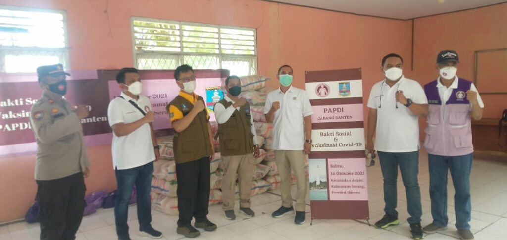 Persatuan Dokter Q Spesialis Penyakit Dalam (PAPDI) Cabang Banten, dan Camat Anyar bersama Kapolsek Anyar dan Koramil serta Puskesmas Anyar, menggelar kegiatan vaksinasi Covid-19 dan bakti sosial pembagian Sembako kepada masyarakat Kecamatan Anyar.