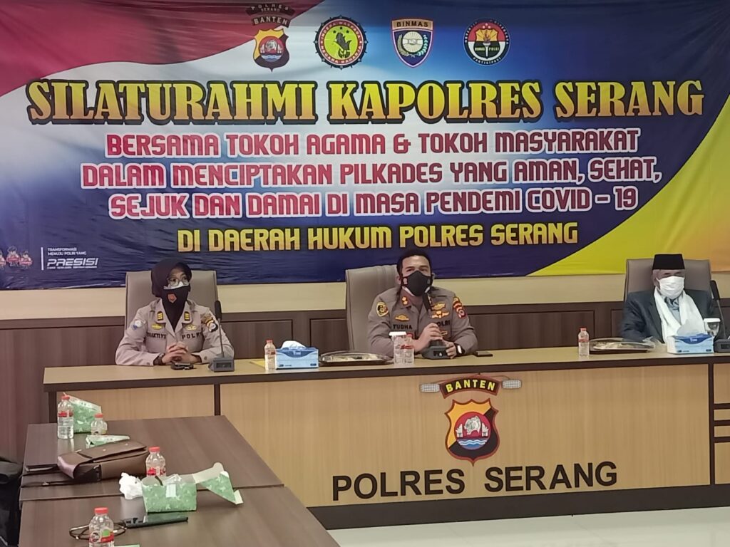 Dalam kegiatan itu, Kapolres Serang, AKBP Yudha Satria, mengajak para Tokoh Agama dan Tokoh Masyarakat agar turut serta membantu guna menciptakan pelaksanaan Pilkades serentak di Kabupaten Serang, berjalan dengan sehat, sejuk dan damai di masa pandemi Covid-19.
