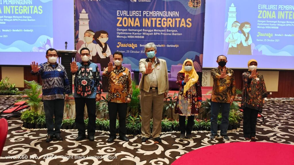 Dalam rangka terus memantau dan mengevaluasi kemajuan Pembangunan Zona Integritas (ZI) menuju Wilayah Bebas dari Korupsi (WBK), Kantor Wilayah Badan Pertanahan Nasional (BPN) Provinsi Banten, menggelar Evaluasi Pembangunan Zona Integritas berthemakan “Dengan Semangat Bangga Melayani Bangsa, Optimisme Kantor Wilayah BPN Provinsi Banten Menuju WBK/WBBM” yang dilaksanakan di Atria Hotel Gading Serpong, pada Senin (26/10/2021).