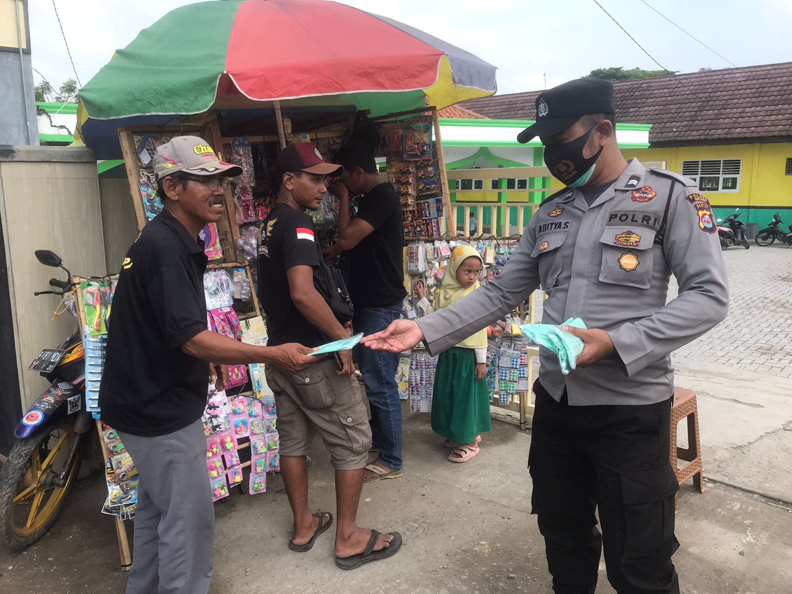 “Kami menyampaikan himbauan dan sosialisasi kepada masyarakat Tirtayasa tentang vaksin Covid-19 agar melaksanakan peraturan serta himbauan untuk menjalankan aktivitas supaya tetap mengedepankan protokol kesehatan dengan cara 5M di masa Adaptasi Kebiasaan Baru (AKB) serta membagikan masker secara gratis,” ucap Bripka Wisnu.