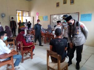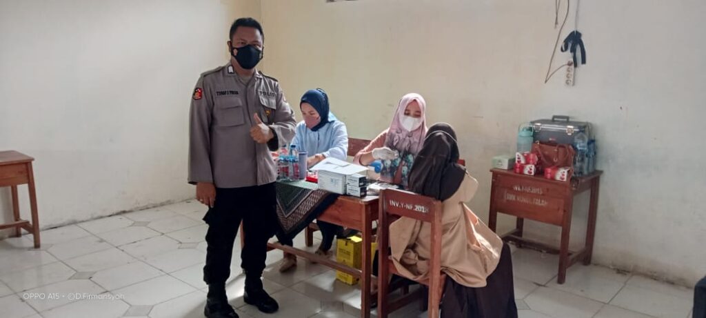 Serbuan kegiatan vaksinasi massal bagi para pelajar dan masyarakat di Yayasan Nurul Falah Desa Bojong Pandan, Kecamatan Tunjung Teja, Kabupaten Serang, Banten, pada Sabtu (13/11/2021).
