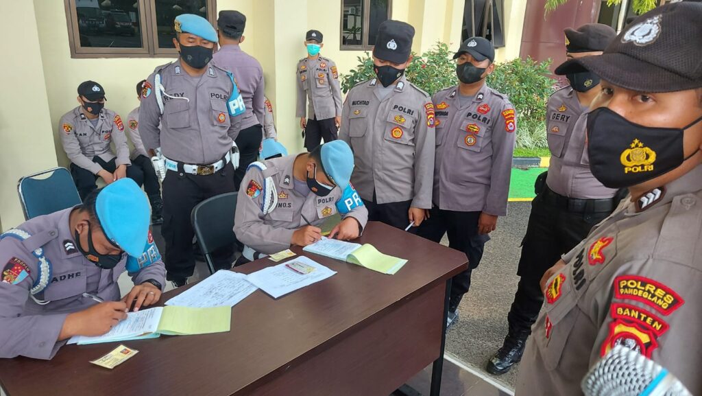Subbid Provos Bidpropam Polda Banten, dipimpin langsung oleh Kasubbid Provos Polda Banten, Kompol Muhammad Andra Wardhana, melaksanakan penertiban disiplin kepada personil Polres Pandeglang.