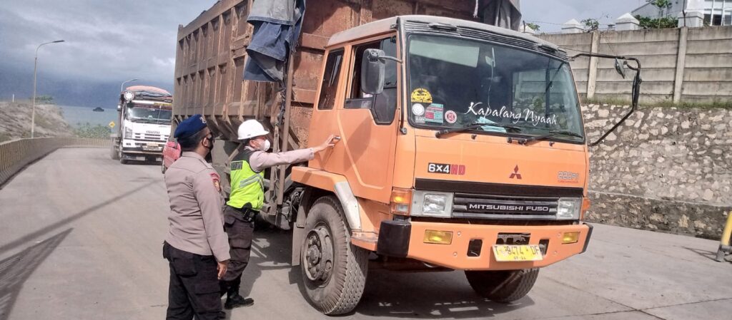 Personil Ditpamobvit Polda Banten, melakukan pengamanan di PT. Cemindo Gemilang yang berada di Kecamatan Bayah, Kabupaten Lebak, Provinsi Banten, pada Kamis (18/11).