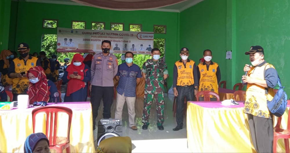 Dalam rangka menyambut HUT PGRI ke-76, PGRI Cabang Pamarayan bekerja sama dengan UPT Puskesmas Pamarayan menggelar vaksinasi Covid-19 di gedung PGRI Cabang Pamarayan, Kecamatan Pamarayan, Kabupaten Serang. pada Sabtu (20/11/2021).