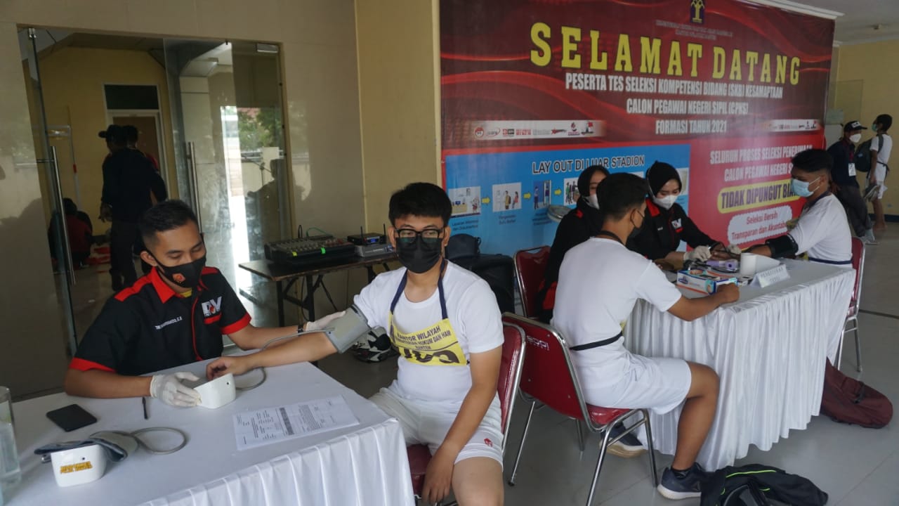 “Sebelum tes Kesemaptaan peserta terlebih dahulu melaksanakan tes kesehatan yang dilakukan oleh tim Biddokkes Polda Banten yang meliputi, cek tensi darah, pengukuran tinggi badan dan berat badan,” terang AKBP Maya.