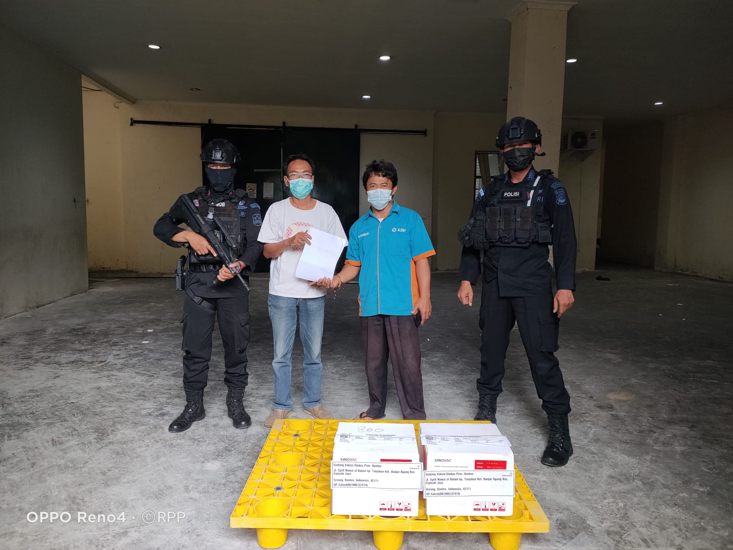 “Hari ini Satbrimob Polda Banten melakukan pengawalan dan pengamanan distribusi vaksin Covid-19. Pengawalan ini dipimpin oleh Ps Paops Subden 2 Detasemen Gegana Satbrimobda Banten, Bripka Ari Prayogo, didampingi Briptu Rezza Purnama P dan juga 4 personil Pasukan Gegana Korbrimob Polri,” kata Dwi Yanto.