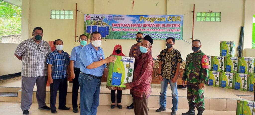 Pada tahun ini, 11 November 2021, PT. Indah Kiat Serang, kembali membagikan 50 hand sprayer untuk masyarakat khususnya kelompok tani (Poktan) yang ada di Kecamatan Kragilan yang dibagi menjadi 2 tahap. Dalam Acara itu hadir perwakilan dari Dinas Pertanian Kabupaten Serang, Camat Kragilan, Kapolsek Kragilan, serta perwakilan Manajemen PT. Indah Kiat Serang.