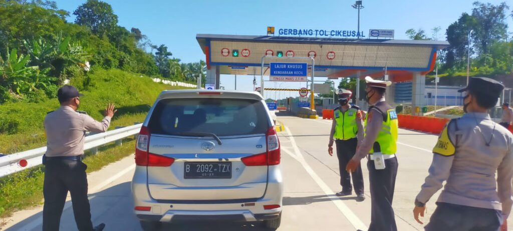 Penyekatan dilakukan di pintu masuk gerbang Tol Cikeusal arah ke Jakarta.
