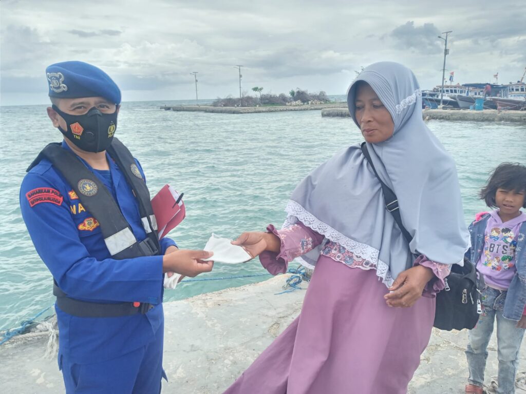Adapun pembagian masker tersebut dilakukan oleh Bharaka Seno Bagus yang merupakan crew kapal patroli Polisi XXIII-1004