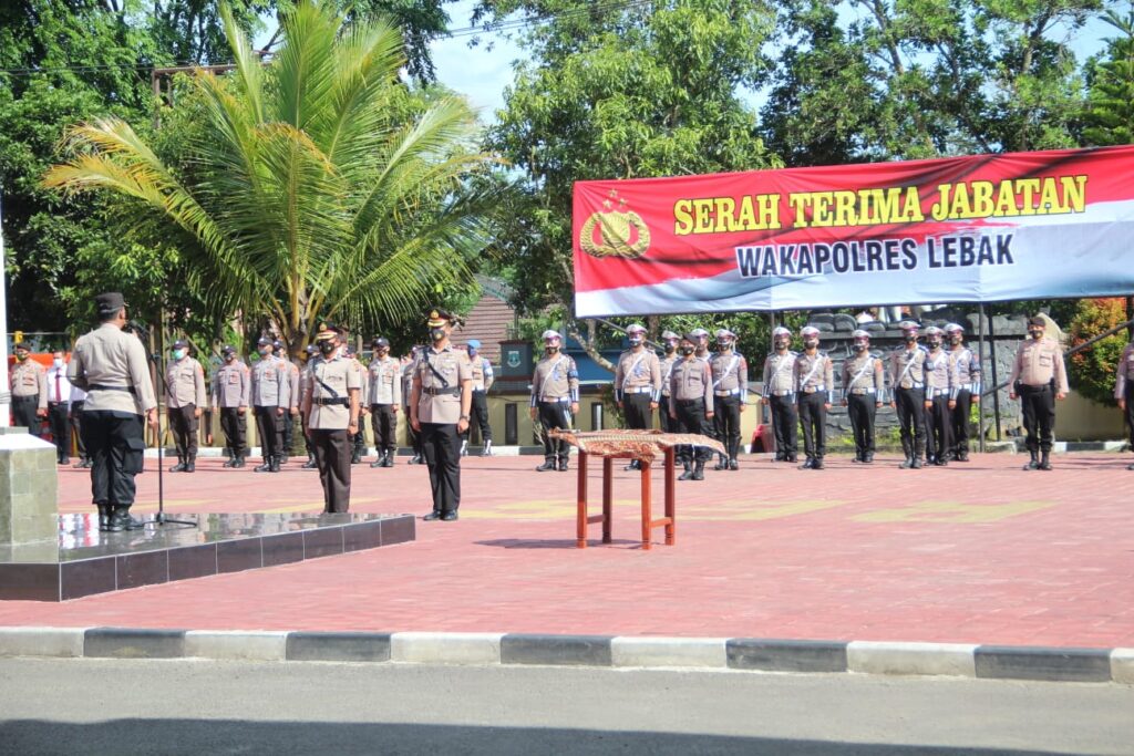 Kepolisian Resor Lebak, Polda Banten, menggelar upacara Serah Terima Jabatan (Sertijab) Wakapolres Lebak, Kasat Resnarkoba Polres Lebak, Kapolsek Sajira, Kapolsek Sobang, Kapolsek Curugbitung, Kapolsek Bojongmanik dan Kapolsek Cileles di Lapangan Mapolres Lebak, pada Senin (13/12/2021).