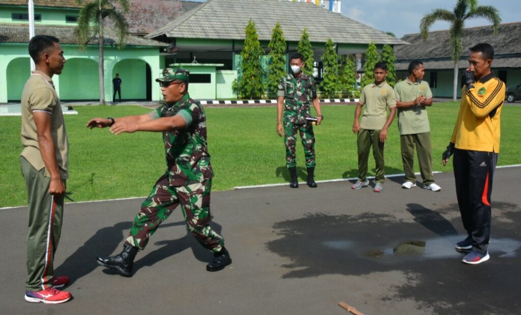 Dalam rangka meningkatkan kemampuan prajurit untuk menghadapi lawan jarak dekat, Korem 064/MY Banten melaksanakan latihan bela diri taktis di lapangan apel Makorem Jl. Maulana Yusuf No.9 Kota Serang, pada Jum’at (17/12/2021).