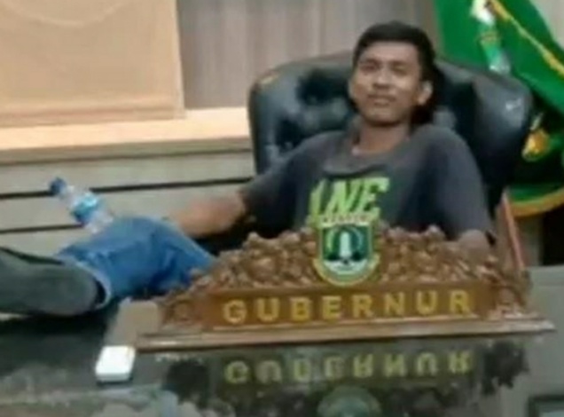 “Dari hasil penyidikan empat tersangka yaitu AP (46), SH (33), SR (22), SWP (20) dikenakan pasal 207 KUHP tentang secara sengaja dimuka umum menghina sesuatu kekuasaan negara dengan duduk di meja kerja Gubernur, mengangkat kaki di atas meja kerja Gubernur dan tindakan tidak etis lainnya, dengan ancaman pidana 18 bulan penjara, terhadap 4 tersangka tersebut tidak dilakukan penahanan,” tukas Ade Rahmat Idnal.