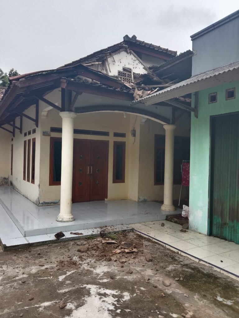 Salah satunya rumah Anggota BPD Desa Ranca Sanggal, H. Arwija, yang beralamat di Kampung Suka Genah RT.003/RW.03 Desa Ranca Sanggal. Dimana akibat terdampak gempa teras rumahnya porak poranda, Akibat gempa bumi yang terjadi Jum’at 14 Januari 2022. Pukul 16,05 WIB.
