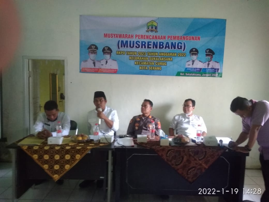 Kegiatan Musyawarah Perencanaan Pembangunan (Musrenbang) di Kelurahan Sukalaksana, Kecamatan Curug, Kota Serang, digelar di Aula Kelurahan Sukalaksana, pada Rabu (19/1/22).
