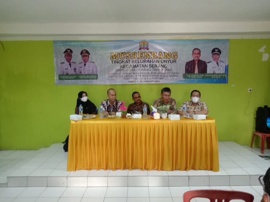 Pemerintah Kelurahan Unyur, Kecamatan Serang, Kota Serang, menggelar kegiatan Musyawarah Perencanaan Pembangunan (Musrenbang) untuk RKPD tahun 2023. Acara itu bertempat di gedung aula Kelurahan Unyur, pada Kamis (20’1/2022).