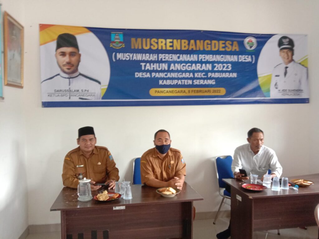 Pemerintah Desa Pancanegara, Kecamatan Pabuaran, Kabupaten Serang. Banten, menggelar kegiatan Musyawarah Perencanaan Pembangunan Desa (MusrenbangDes) untuk tahun 2023. Kegiatan itu bertempat di aula Kantor Desa Pancanegara, pada Selasa (8/2/2022).