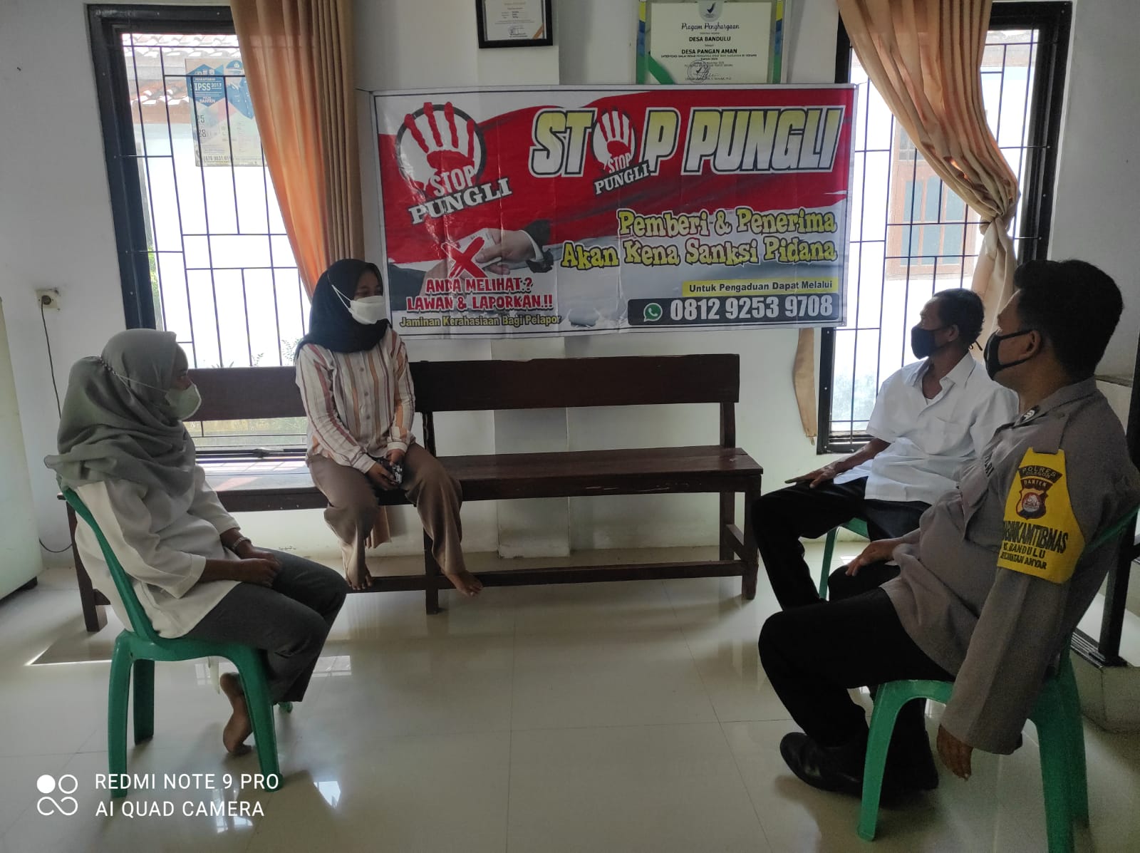Bhabinkamtibmaa Polsek Anyar, Polres Cilegon, Polda Banten, melakukan himbauan dan sosialisasi Saber Pungli kepada Staf Desa Bandulu, Kecamatan Anyar, Kabupaten Serang, pada Rabu (9/2/2022).