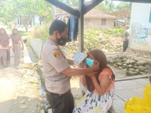 Untuk penanggulangan dan pencegahan penyebaran wabah Covid-19, Polsek Leuwidamar, Polres Lebak, Polda Banten, melaksanakan pembagian masker secara gratis kepada warga di Kampung Lebak Gedong, Desa Leuwidamar, Kecamatan Leuwidamar, Kabupaten Lebak. pada Sabtu (19/02/2022).