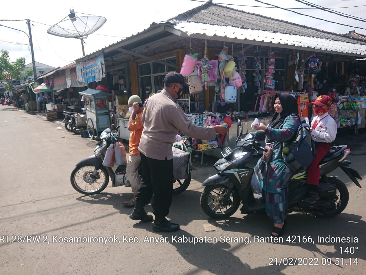Personil Polsek Anyar, Polres Cilegon, Polda Banten, melaksanakan Kegiatan Kepolisian Rutin Yang Ditingkatkan (KKRYD) berupa pendisiplinan dan penegakkan Protokol Kesehatan (Prokes) di daerah hukum Polsek Anyar.