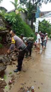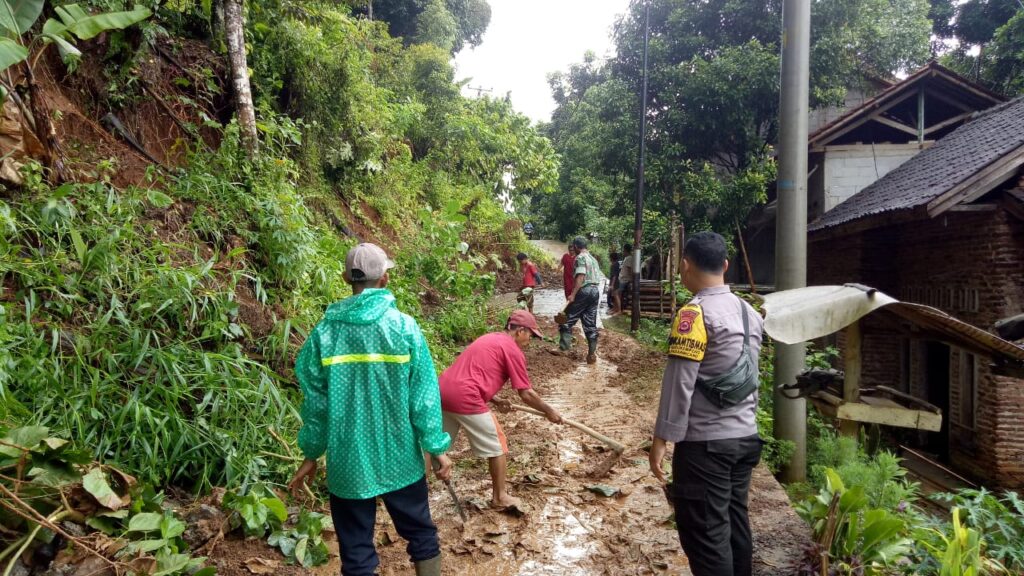 Di Desa Kadukempong, Polsek Padarincang.Evakuasi Jalan Tertutup Tanah Longsor
