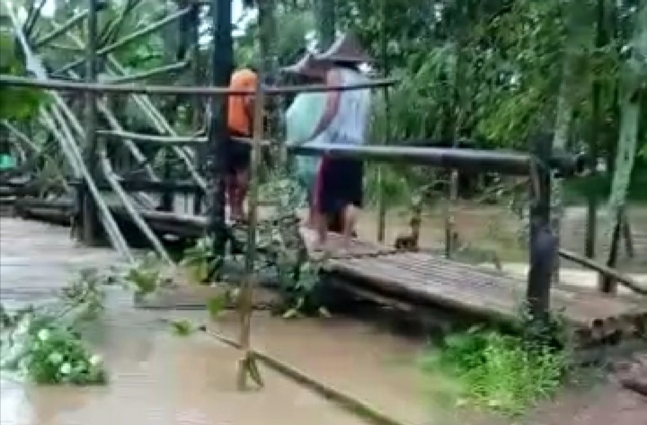 Warga Kampung Kajoroan, Desa Ranca Sanggal, Kecamatan Cinangka, Kabupaten Serang, Banten, sejak beberapa hari ini diguyur hujan yang terus-menerus, pada Rabu (2/3/2022). Sehingga Kampung Kejoroan mengalami kebanjiran setinggi 60 Cm. Ditambah lagi terputus jembatan kayu/bambu yang menghubungkan ke Kota Kecamatan Cinangka.