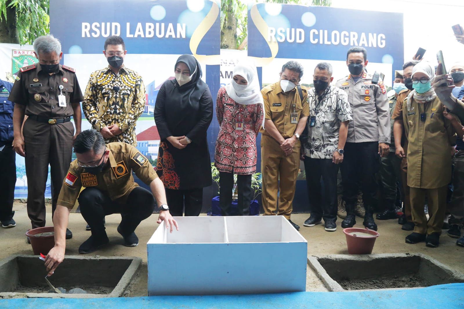 Wakil Gubernur Banten, Andika Hazrumy, melakukan peletakan batu pertama pembangunan RSUD Labuan dan RSUD Cilograng di lahan bakal pembangunan RSUD Labuan, Kabupaten Pandeglang, pada Selasa (8/3).