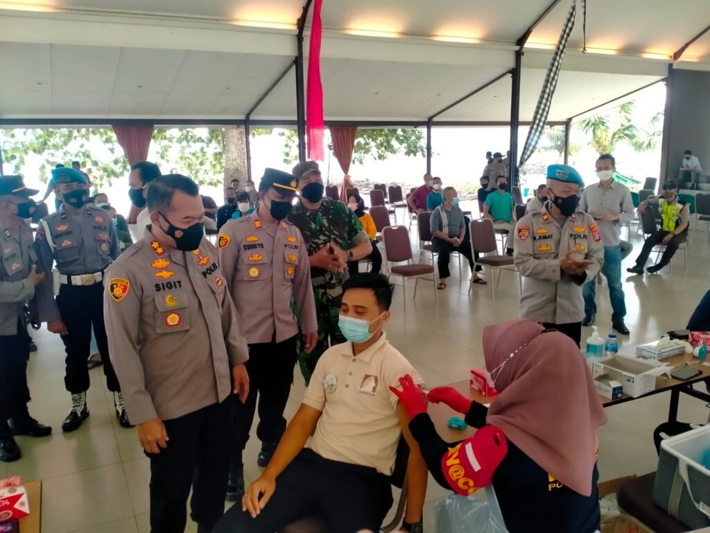 Hadir dalam kegiatan vaksinasi tersebut antara laun, Kapolres Cilegon AKBP Sigit Haryono, S.Ik, SH, Wakapolres Cilegon Kompol Mirodin SH, MH, Kapolsek Anyar AKP Sudibyo Wardoyo SH, Camat Anyar Basuki Mindar S.Pd, Danramil Anyar Kapten Inf. Gunadi, Kasubagkerma Bagops Polres Cilegon AKP Suryana, Kasipropam Polres Cilegon IPTU M. Jumat, Sie Dokkes Polres Cilegon dan peserta vaksinasi.