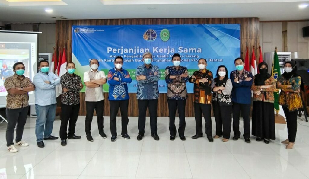 Dalam rangka memberikan kemudahan untuk mengetahui proses upaya administratif dan pelaksanaan putusan pengadilan yang telah memperoleh kekuatan hukum tetap, pada Jumat (18/3/2022), Kantor Wilayah Badan Pertanahan Nasional (BPN) Provinsi Banten dan Pengadilan Tata Usaha Negara (PTUN) Serang, melakukan Memorandum of Understanding (MoU) tentang Pemanfaatan Teknologi Informasi Aplikasi Sistem Informasi Manajemen Perkara atau SIMKARA.