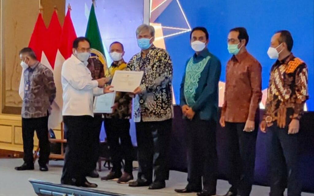 Kantor Wilayah Badan Pertanahan Nasional (BPN) Provinsi Banten, menerima penghargaan atas kontribusi dalam penyerahan aset untuk Bank Tanah dalam rangkaian kegiatan penutupan Rapat Kerja Nasional (Rakernas) Tahun 2022 Kementerian Agraria dan Tata Ruang/Badan Pertanahan Nasional (ATR/BPN) pada Kamis (24/3/2022).