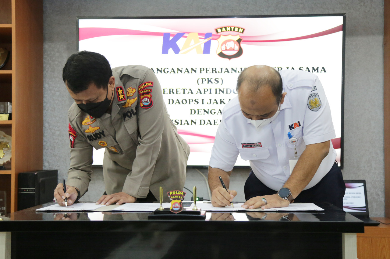 Dalam rangka meningkatkan sinergi antar lembaga, khususnya di bidang keamanan kereta api (KA), PT. KAI Daop 1 Jakarta melakukan penandatanganan perjanjian kerjasama (MoU) dengan Kepolisian Daerah Banten. Penandatanganan dilakukan oleh Executive Vice President Daop 1 Jakarta, Suryawan Putra Hia dan Kapolda Banten, Irjen Pol. Rudy Heriyanto di Kantor Polda Banten.