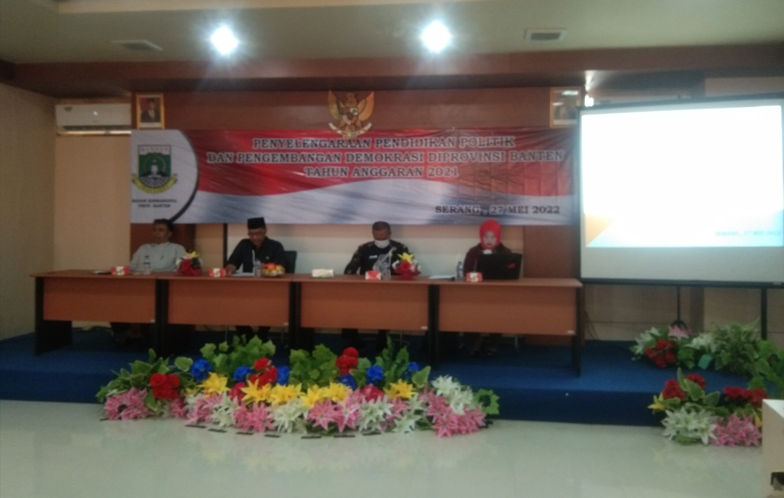 Badan Kesatuan Bangsa dan Politik (Kesbagpol) Provinsi Banten, menggelar Pendidikan Politik dan Pengembangan Demokrasi di Banten. Kegiatan tersebut di ikuti oleh Pengurus Ormas, LSM dan Orsospol di Banten, bertempat di Aula Kantor Badan Kesbangpol, di KP3B Curug, Kota Serang, pada Jum’at (27/5/2022).
