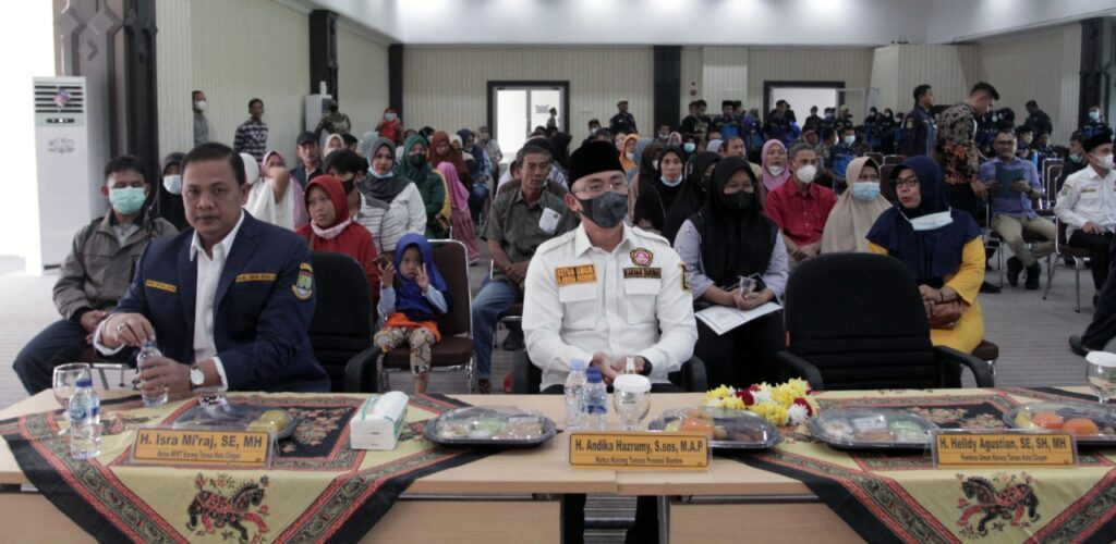 Karang Taruna (KT) Provinsi Banten menggelar seremoni kegiatan bakti sosial di Aula Dinas Kominfo, Pemkot Cilegon, pada Kamis (2/6). Acara ditandai dengan pembagian BPJS Kesehatan secara gratis seumur hidup kepada warga Cilegon oleh Ketua Karang Taruna Provinsi Banten, Andika Hazrumy.