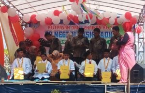 Di penghujung acara, pembagian ijazah yang diserahkan langsung oleh kepala sekolah, di atas panggung disaksikan oleh dewan guru dan wali murid.