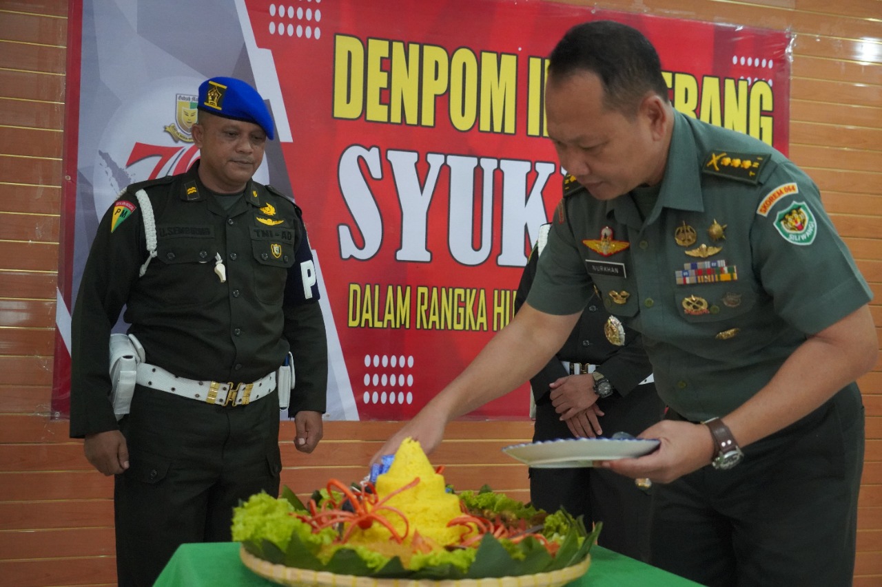 Kasrem 064/MY, Kolonel Inf Nurkhan, mewakili Danrem 064/MY, menghadiri acara syukuran memperingati HUT Pomad (Polisi Militer Angkatan Darat) yang diselenggarakan di Mako Denpom III/4 Serang, Jln Maulana Yusuf Kota No 8 Kota Serang, pada Rabu (22/6/2022).