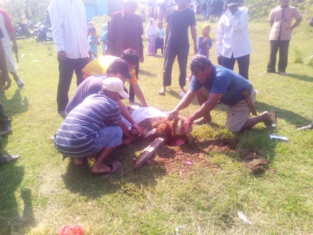 “Lalu daging hewan qurban yang diganti dengan seekor kambing dibagikan kepada fakir miskin, janda, jompo, anak yatim piatu dan masyarakat yang tidak mampu. Itulah kutipan sejarah Nabi Ibrahim yang diperintahkan oleh Allah SWT, untuk memotong putranya diganti dengan seekor kambing oleh Allah SWT,” tuturnya..