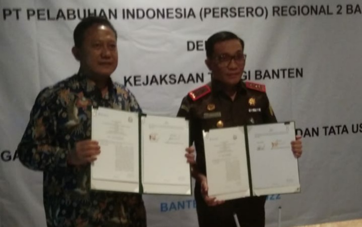 PT. Pelabuhan Indonesia (Persero) Regional II Cabang Banten bersama Kejaksaan Tinggi (Kejati) Banten, melakukan penandatanganan nota kesepahaman Memorandum of Understanding (MoU) terkait penanganan masalah hukum bidang Perdata dan Tata Usaha Negara. Kegiatan itu bertempat di Ratu Hotel Kota Serang, pada Rabu (13/7/2022)